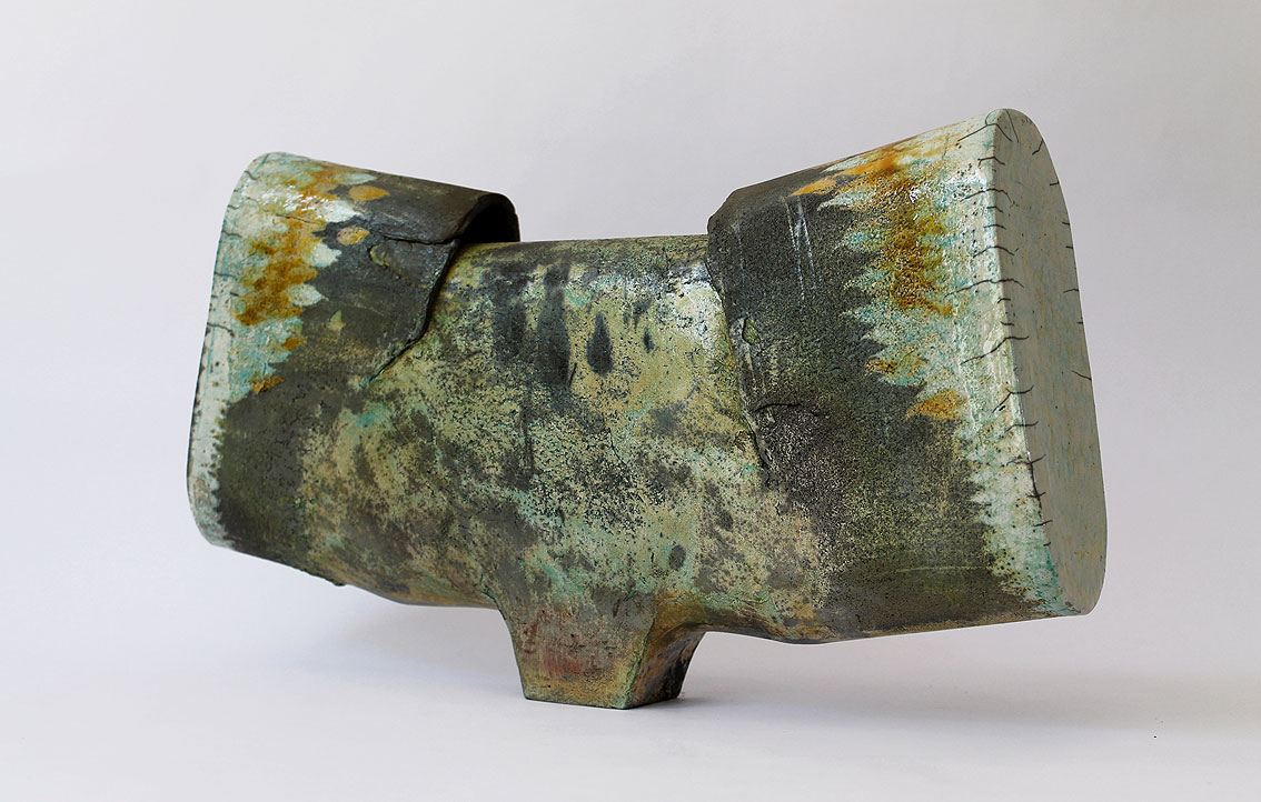 Om de wereld te doorkruisen, nemen de stukken een harnas aan dat bestaat uit een vogelvlucht, een azuurblauwe sneeuw. Geïnspireerd door Japanse kimonos, de stukken zijn zachte krijgers die strijden voor poëzie in de wereld. Vergezeld door bloemen geplukt in de namiddag, aanleunend tegen een boek, elk werk mengt evenwicht met kracht. Ze verwijzen naar de harmonie tussen het lichaam en het landschap. Ieder stuk, gerealiseerd uit gerookt aardwerk, is uniek. |